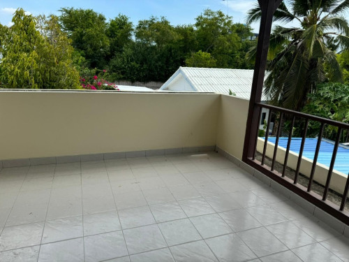 This house has two bedrooms, two bathrooms, a cooking area and a large sized balcony accessed from the front upstairs bedroom.